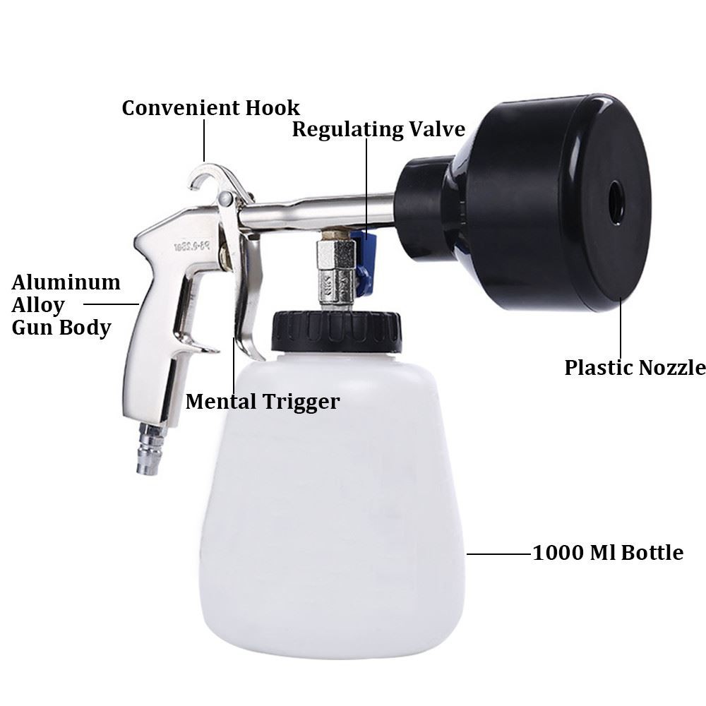 Tornador putu pistole var izsmidzināt dažādus putu tīrīšanas šķidrumus, ko izmanto automašīnas šķiedru un ādas, dzinēja virsmas, riepas virsmas, automašīnas virsbūves un automašīnas paneļa tīrīšanai.