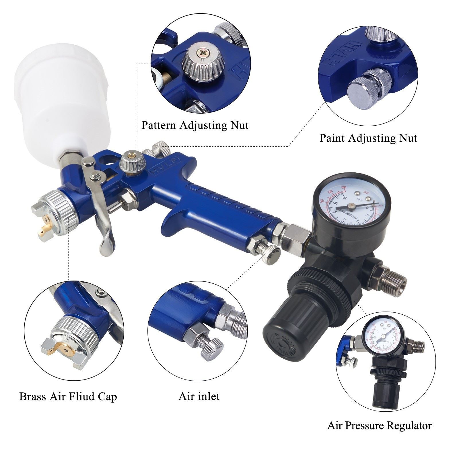 ✔ Šis smidzināšanas pistole ir aprīkots ar 4,2 oz. (125 ml) gravitācijas padeves kausu ar 0,8 mm īstu nerūsējošā tērauda sprauslu un adatu. Tas izsmidzina jebkur no 20 līdz 43 PSI.