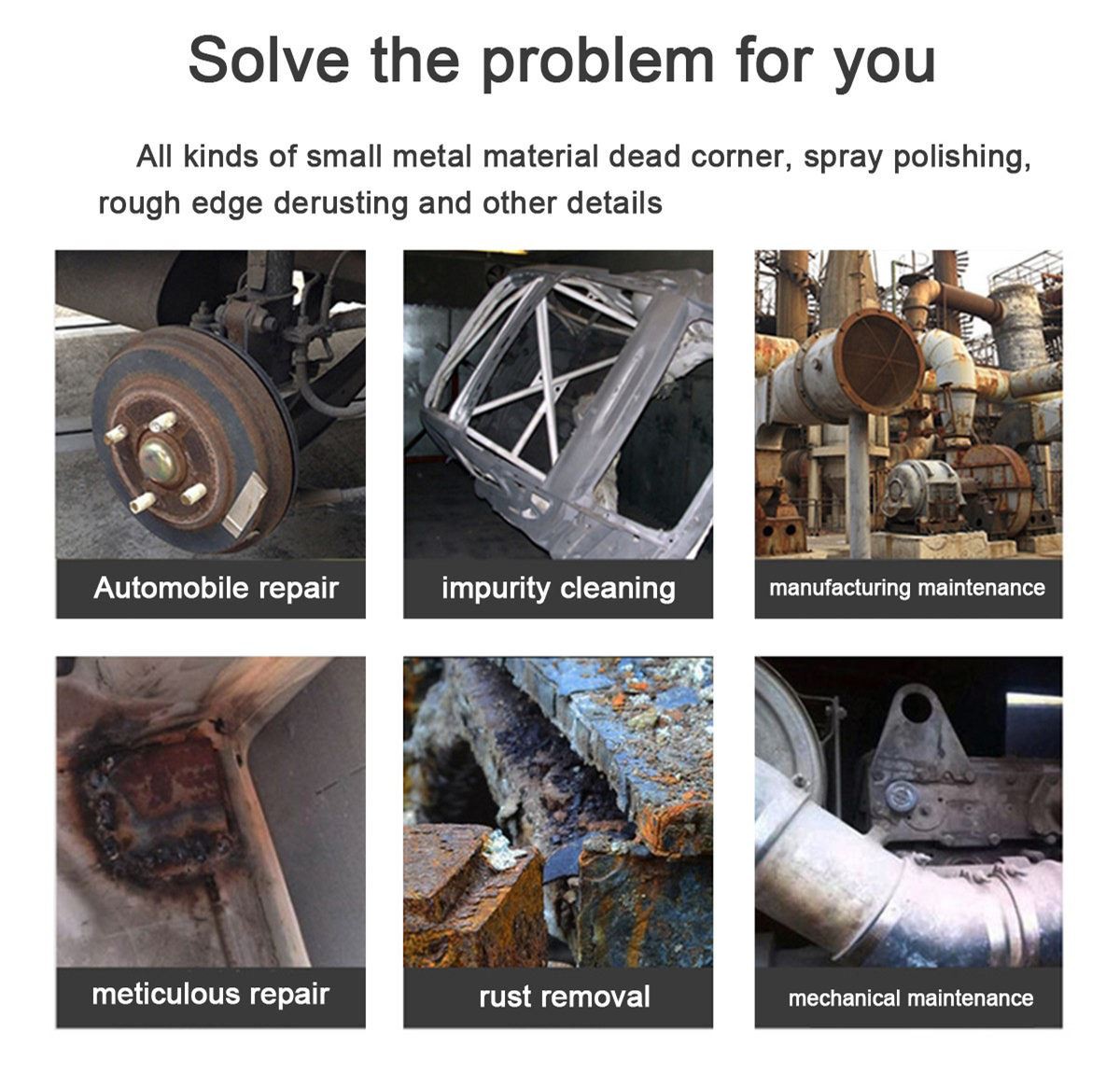 ● Paredzēts visu veidu vieglajiem un mazajiem metāla stūriem, pulēšanai ar aerosolu, primārajām malām, rūsas noņemšanas detaļu pārklājumam.